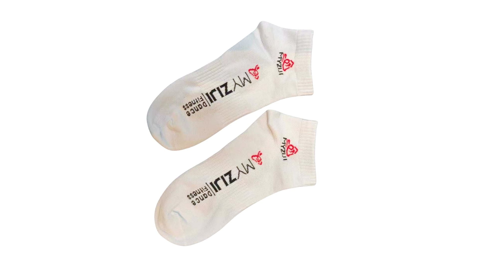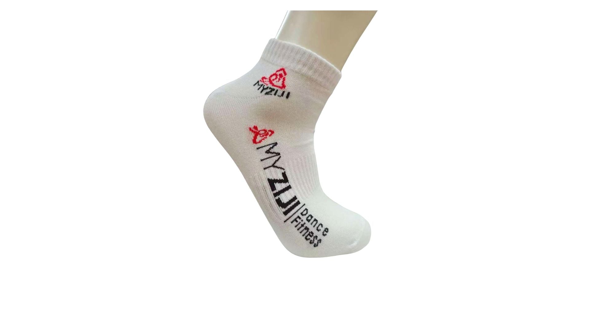Presenting MYZIJI Sports Socks: These versatile white ankle-length socks are designed for everyone, featuring our logo on the ankles and side. Made from breathable materials, they effectively absorb sweat to maintain comfort and dryness.