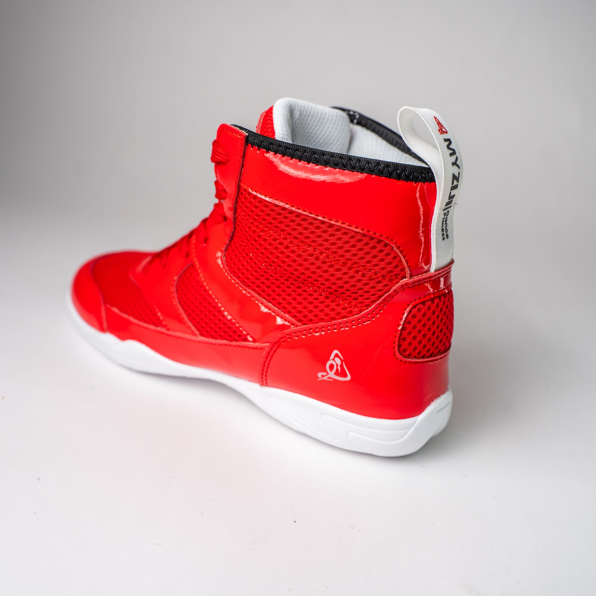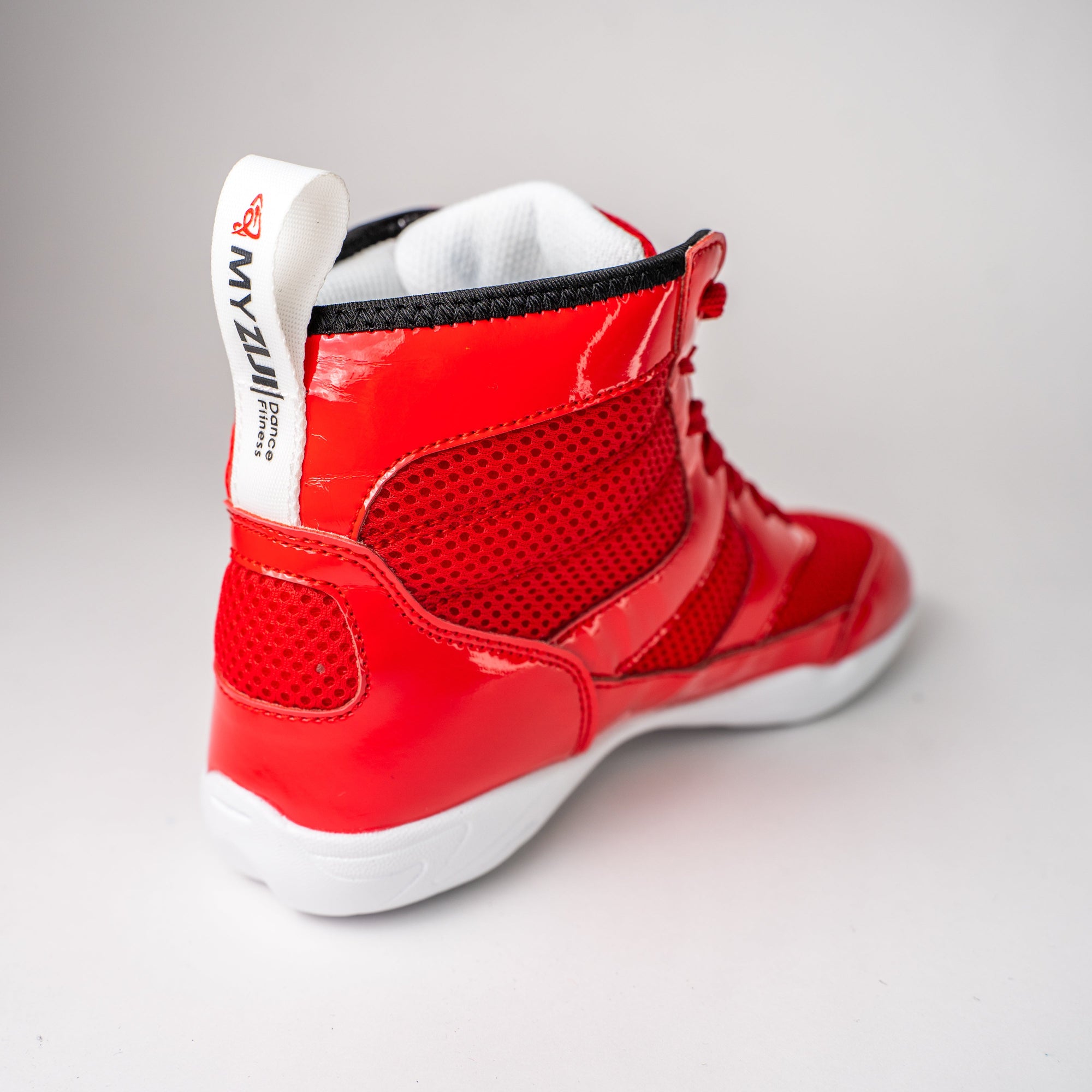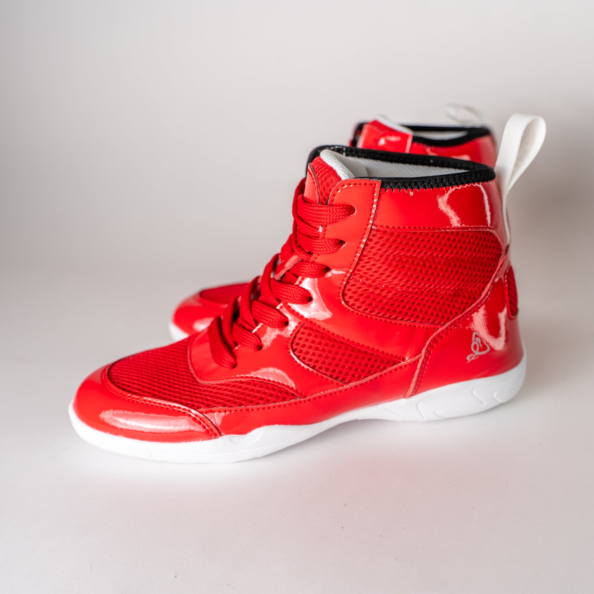 Featuring a vibrant red glossy vegan material and breathable mesh, these unisex sneakers offer invigorating style for every routine.
