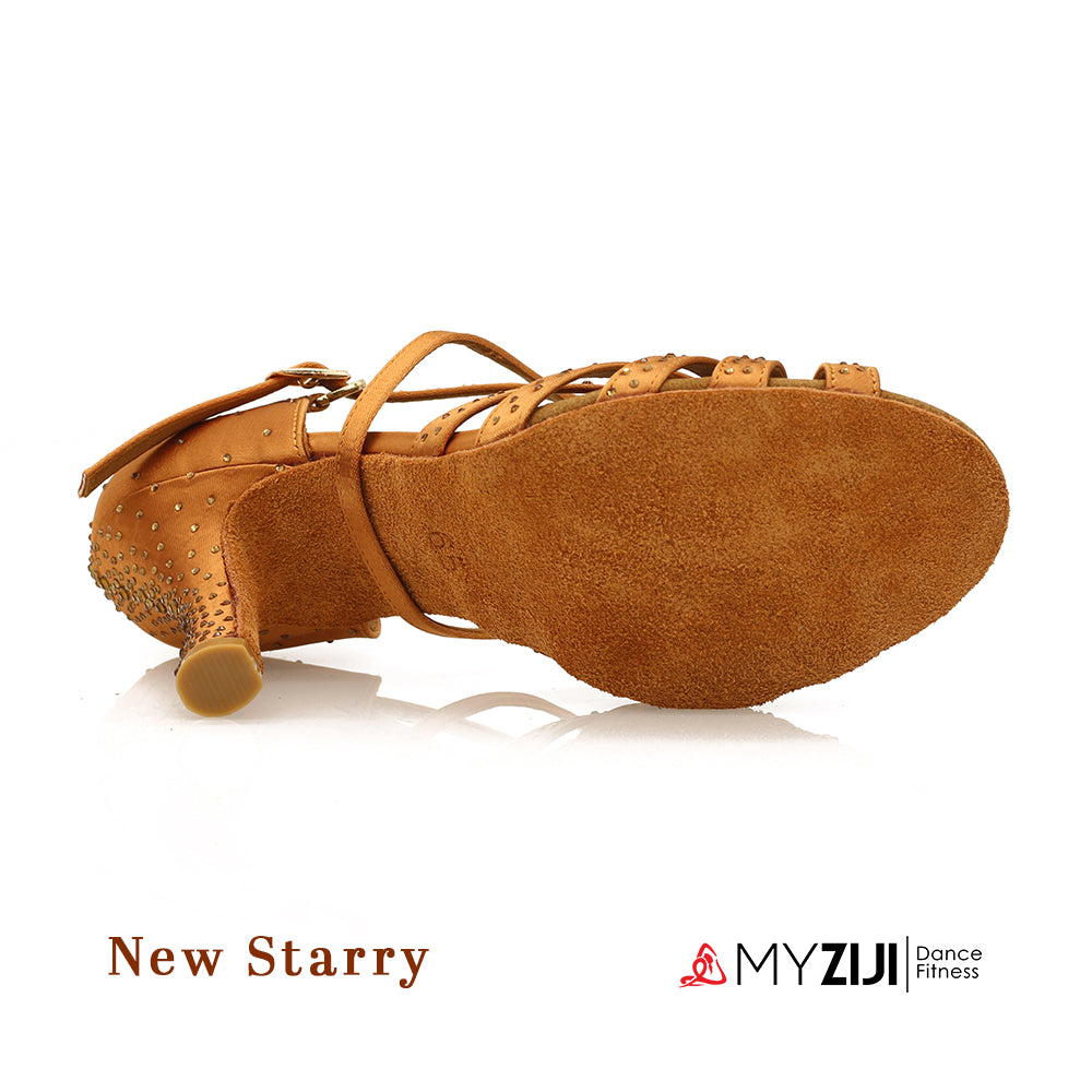 These elegant Dance shoes with golden rhinestones are the must for your dance event or performances. They are made with premier satin upper material and super flexible suede soles, best for dance movement. The strap can be worn around the ankle or under the foot, and the flared heel is great for stability and best for dancing.