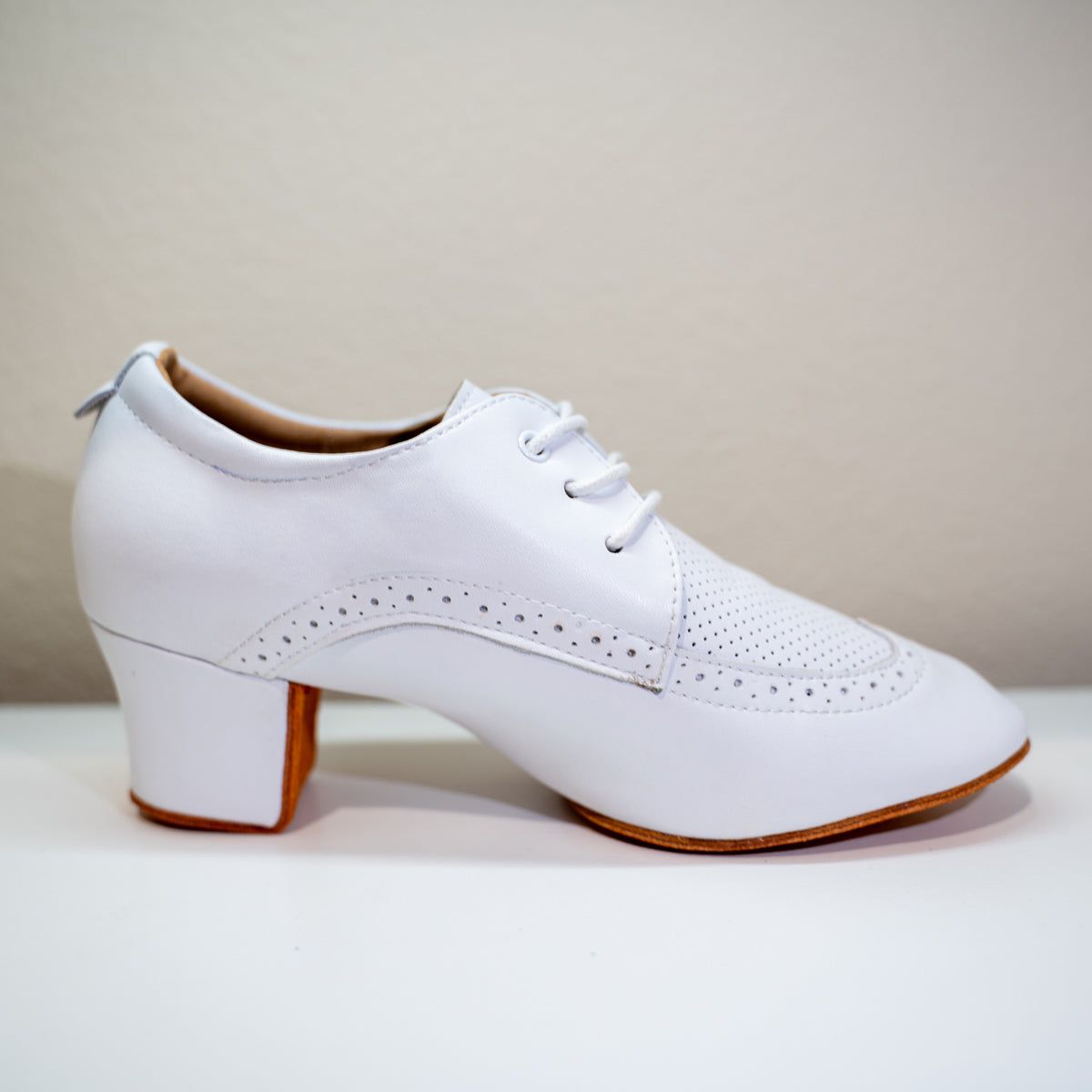 LaLa Land White Cuban Heel Dance Shoes – Premium Leather with Suede Sole
